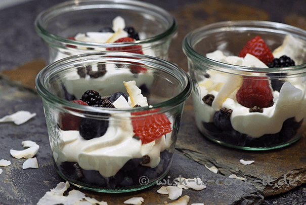 Kokosnussjoghurt mit Beeren